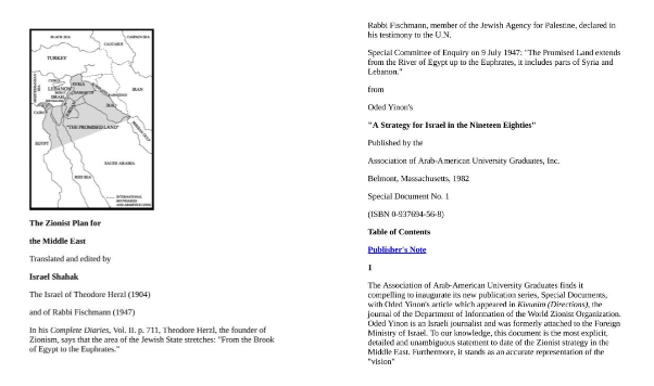 Dokument Veľký Izrael zahŕňa dolnú polovicu Sýrie, veľkú časť Jordánska a siaha až do Egypta, ako aj väčšinu Libanonu, a to je teraz veľmi reálne.