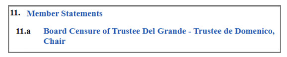 Z programu zasadnutia vyplýva, že predseda správnej rady Markus de Domenico (obvod č. 2), vystúpi s vyhlásením o uplatnení sporných sankcií na rok 2020 voči správcovi Del Grande. Pozri snímku obrazovky nižšie.