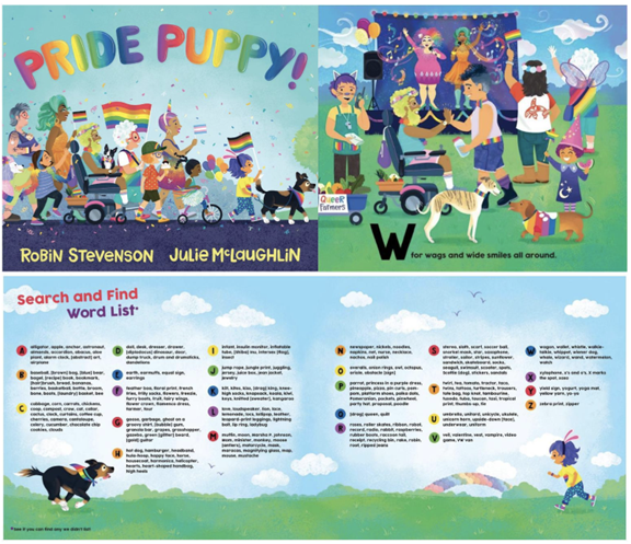 “Jedna z kníh vyzýva troj- a štvorročné deti, aby hľadali obrázky vecí, ktoré by mohli nájsť na sprievode hrdosti, vrátane ‘intersexuálnej (vlajky), ’ a ‘;(drag) kráľa’ a ‘(drag) kráľovnú,’ ‘kožu,’ ‘spodnú bielizeň,’ a obrázok slávnej LGBTQ aktivistky a sexuálnej pracovníčky, ‘Marsha P. Johnson,’” v právnom podaní sa uvádza.