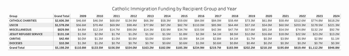 Ľudia hovoria, že obrázok je hodný tisícov slov, ale v tomto prípade je’hodný MILIARDY. Bidenova administratíva poskytla katolíckym mimovládnym organizáciám za posledné štyri roky takmer 2,9 miliardy dolárov na financovanie súvisiace s prisťahovalectvom. To je viac ako TRIČNÁSOBNÁ úroveň financovania za prvej Trumpovej vlády a takmer DVOJNÁSOBNÁ suma udelená za Obamovej vlády v priebehu osem rokov!