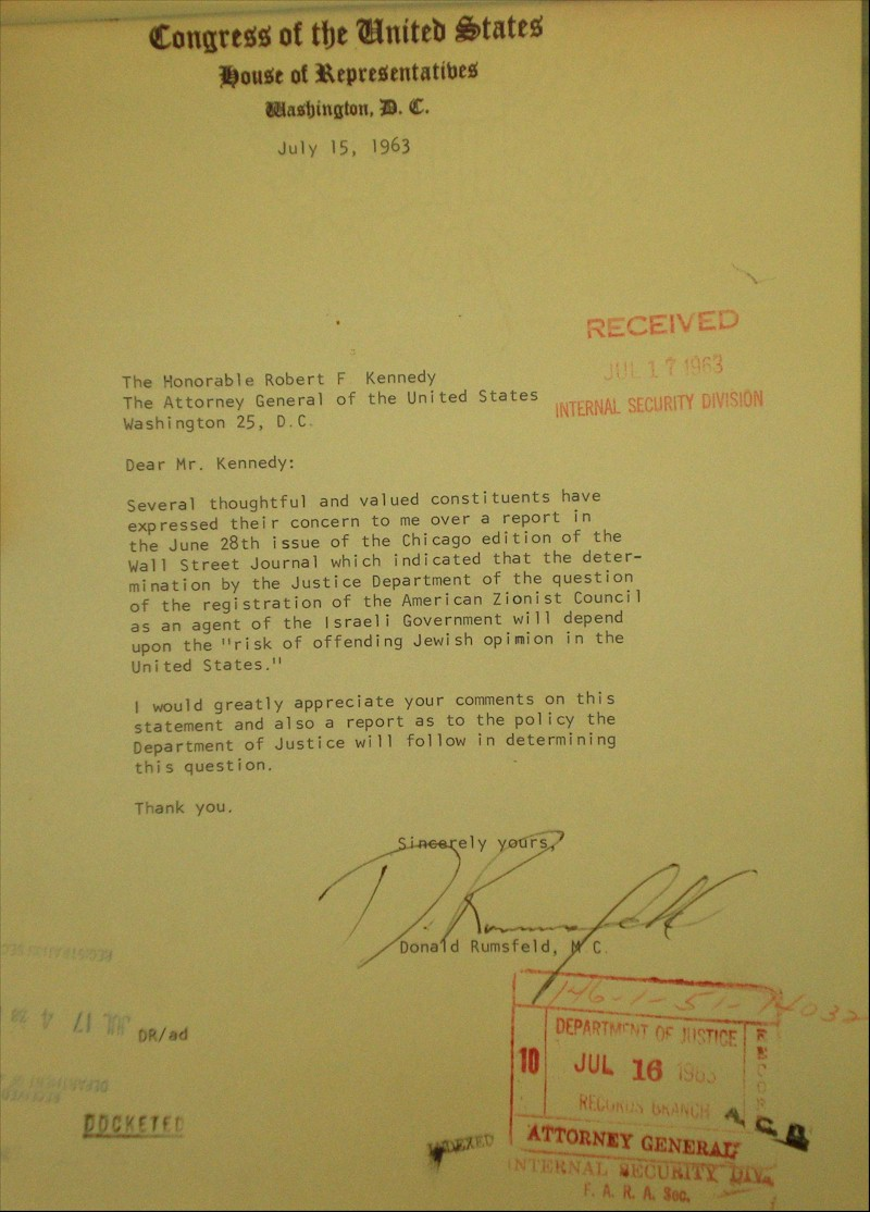 Keď Robert F. Kennedy starší naliehal na AZC, aby sa zaregistrovala podľa FARA, dostal dopis, ktorý mu to neodporúčal.