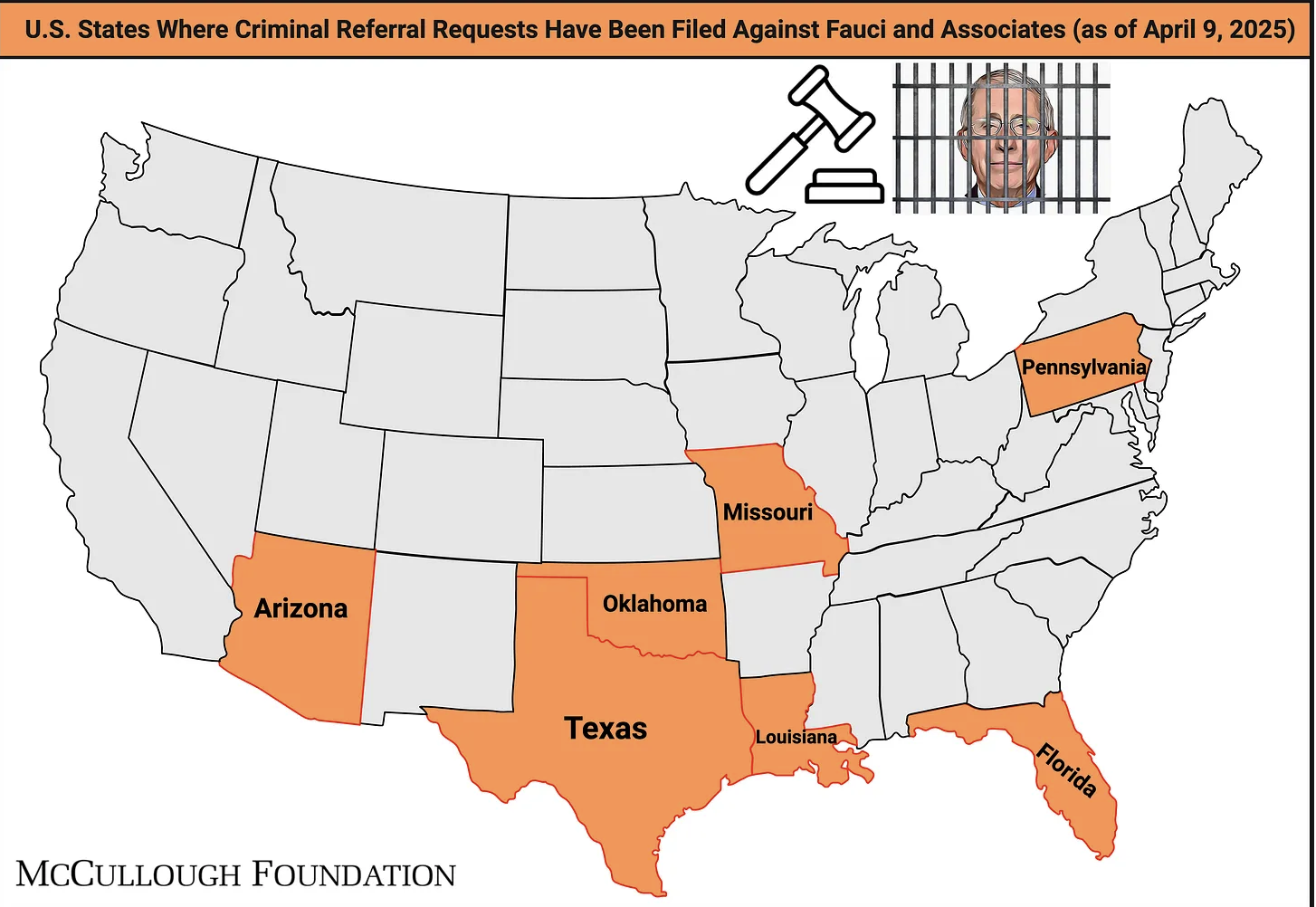 Dňa 8. apríla 2025 predložila skupina Vires Law Group v spolupráci s nadáciou Former Feds Group Freedom Foundation formálne žiadosti o trestné oznámenie generálnym prokurátorom Arizony a Pensylvánie. Tieto podania vyzývajú štátnych prokurátorov, aby začali trestné vyšetrovanie Dr. Anthonyho Fauciho a ďalších významných predstaviteľov verejného zdravotníctva a vlády za údajné trestné činy spáchané počas pandémie COVID-19.