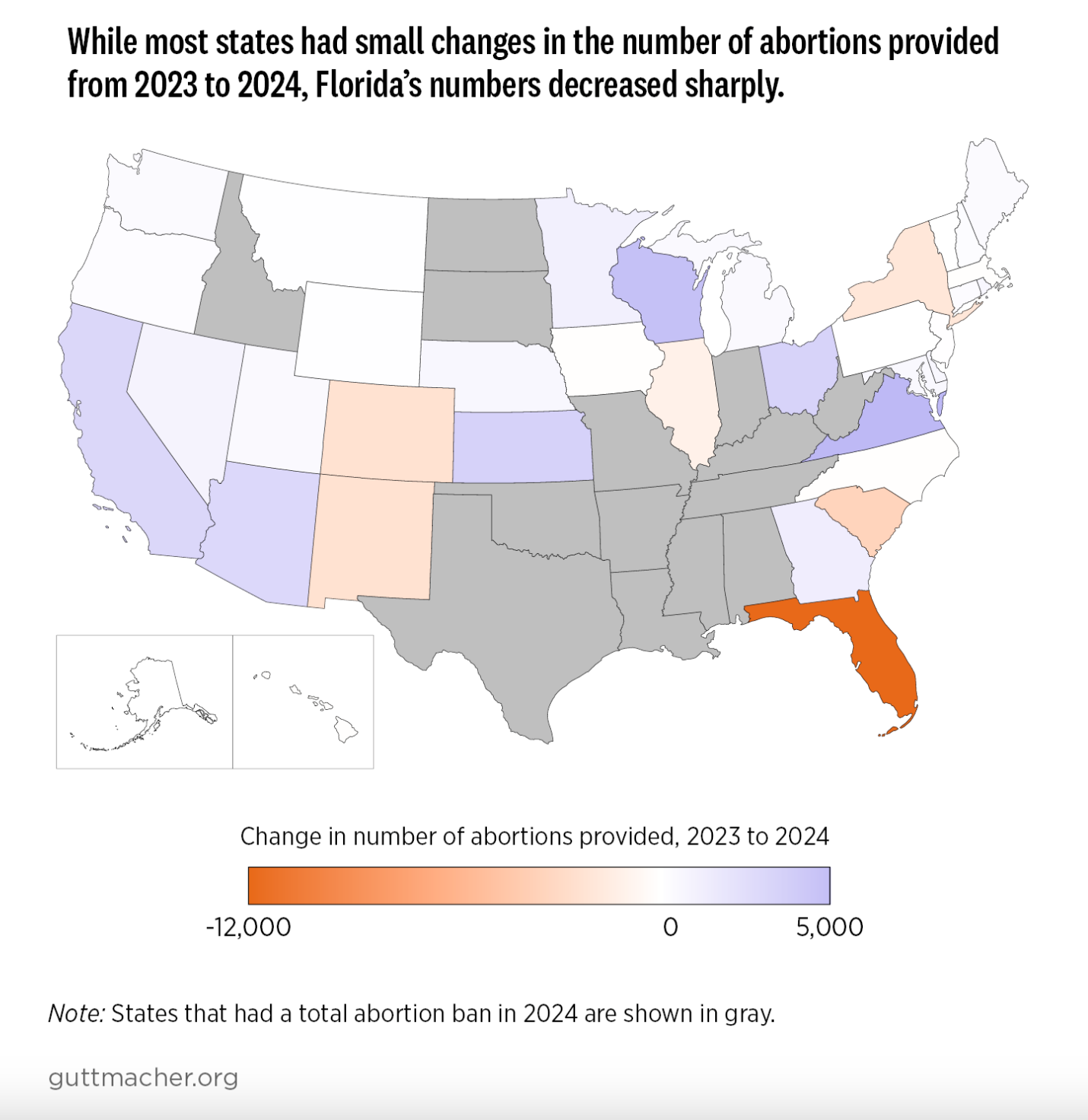 Podľa inštitútu Guttmacher, ktorý podporuje potraty, zaznamenala Florida prudký pokles potratov po zákaze šesťtýždňovej interrupcie, ktorý nadobudol účinnosť v roku 2024. Kým v roku 2023 predstavoval počet potratov v tomto štáte’85 770, do roku 2024 klesol na 73 710.