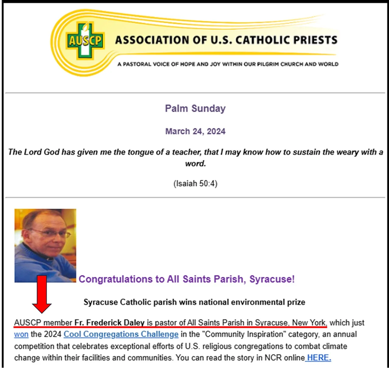 Sakrálne správanie a rúhavé výroky pátra Freda Daleyho’sa v dnešnej Cirkvi bohužiaľ stali až príliš bežnými a do veľkej miery to súvisí s tým, že takíto kňazi neočakávajú pokarhanie ani trest za vážne pohoršenie, ktoré spôsobujú. A to je jedno z vážnych nebezpečenstiev, ktoré predstavuje AUSCP s takými ľuďmi, ako je Daley, reprezentujúcimi jej dispozície a agendu. To, čo Daley urobil v Syrakúzach, bolo neospravedlniteľné, a napriek tomu AUSCP oslavovala jeho článok New Ways Ministry, čím signalizovala silnú podporu jeho následného konania.