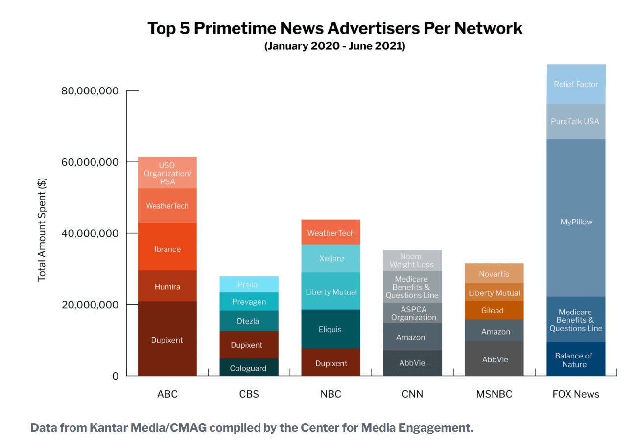 Farmaceutická reklama tak významne prispieva k príjmom televízneho priemyslu. Okrem toho je farmaceutická reklama obzvlášť viditeľná počas spravodajských programov a v skorých večerných hodinách, pričom sa zameriava na starších divákov, čo je demografická skupina známa vyššou spotrebou liekov.