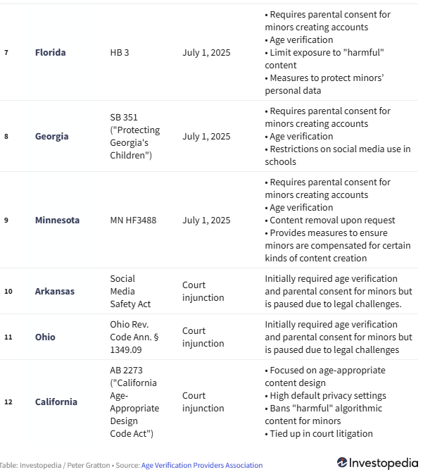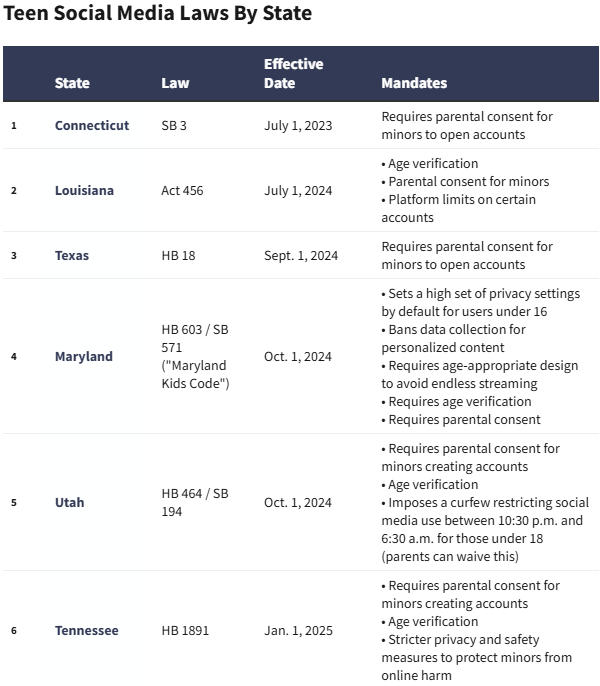 Prechodom z federálnej úrovne na štátnu sa mnohé požiadavky na overenie veku pre sociálne médiá v USA riešia na štátnej úrovni.