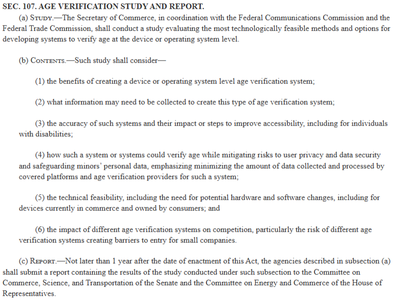V súčasnosti sa v návrhu zákona požaduje vypracovanie “štúdie a správy o overovaní veku” s cieľom zvážiť, ktoré systémy by sa mohli použiť na overovanie veku na internete.