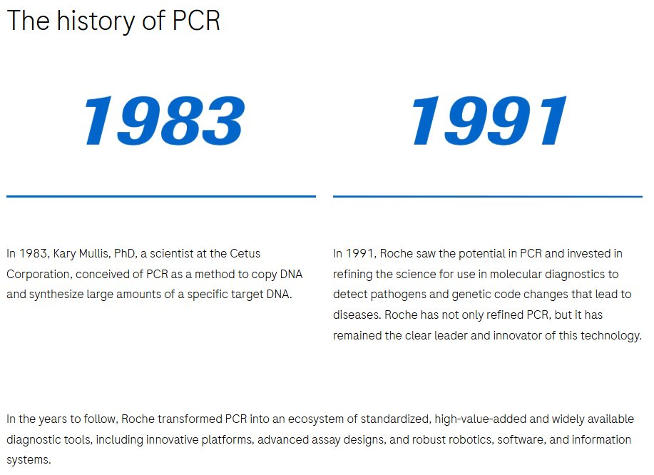 V roku 1991 spoločnosť Roche investovala do Technológie polymerázovej reťazovej reakcie (PCR) – rovnakej, ktorá sa neskôr použila na testovanie COVID-19.