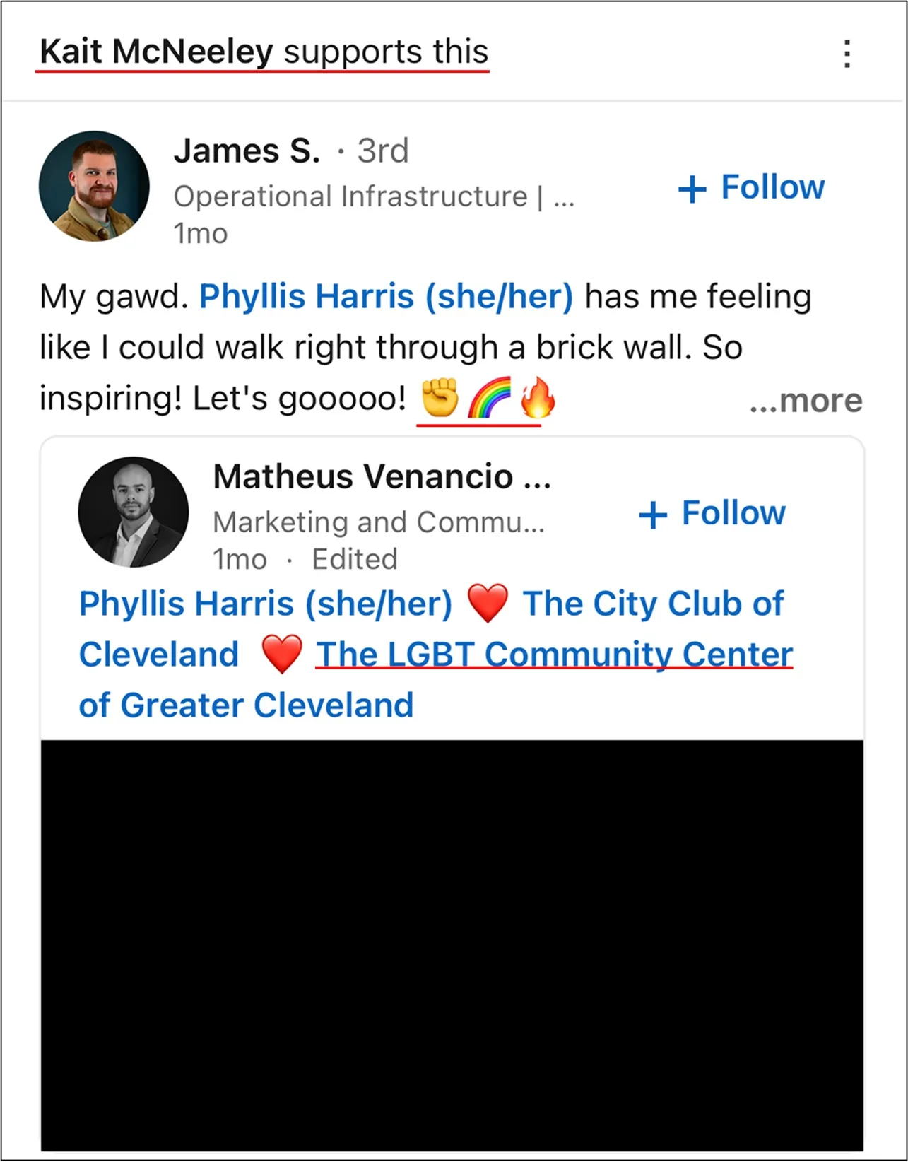 V priebehu 24 hodín od odoslania tohto e-mailu bol profil McNeeley’ovej na LinkedIn zmenený tak, že jej história práce pre potraty a LGBT ideológiu a ich podpory bola vymazaná.