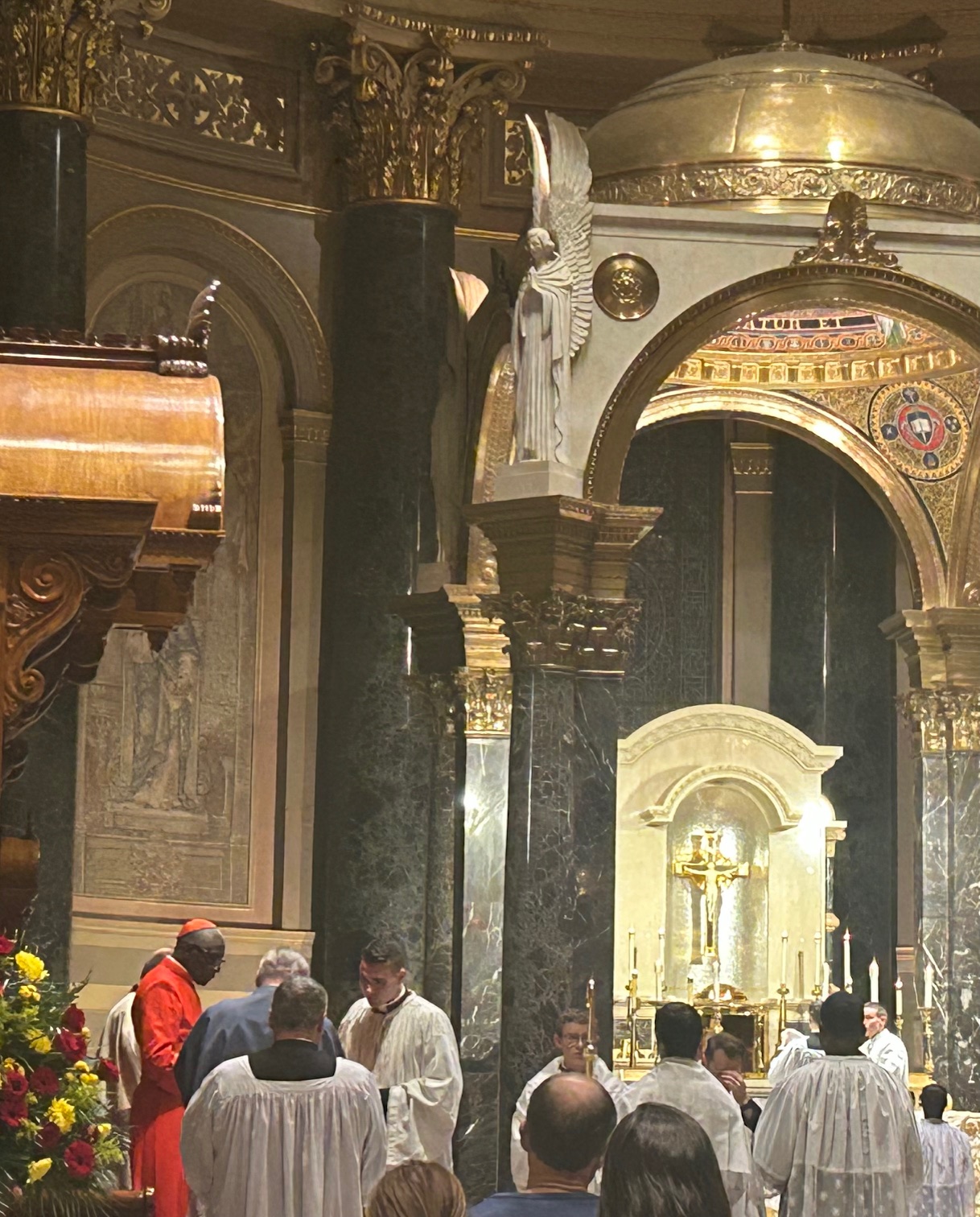 “Cirkev vo svojej starobylej kráse a tradícii ustanovila práva na to, aby sme (nášmu Pánovi) dali tú lásku, tú náklonnosť, tú adoráciu ako Bohu,” povedal. “A my by sme nemali robiť nič menej, ako sláviť (liturgie) takto … (s) krásou, nielen veľké piesne a hymny, kantiká a majestátnosť toho všetkého, ale vedieť, že Ježiš je milovaný.”