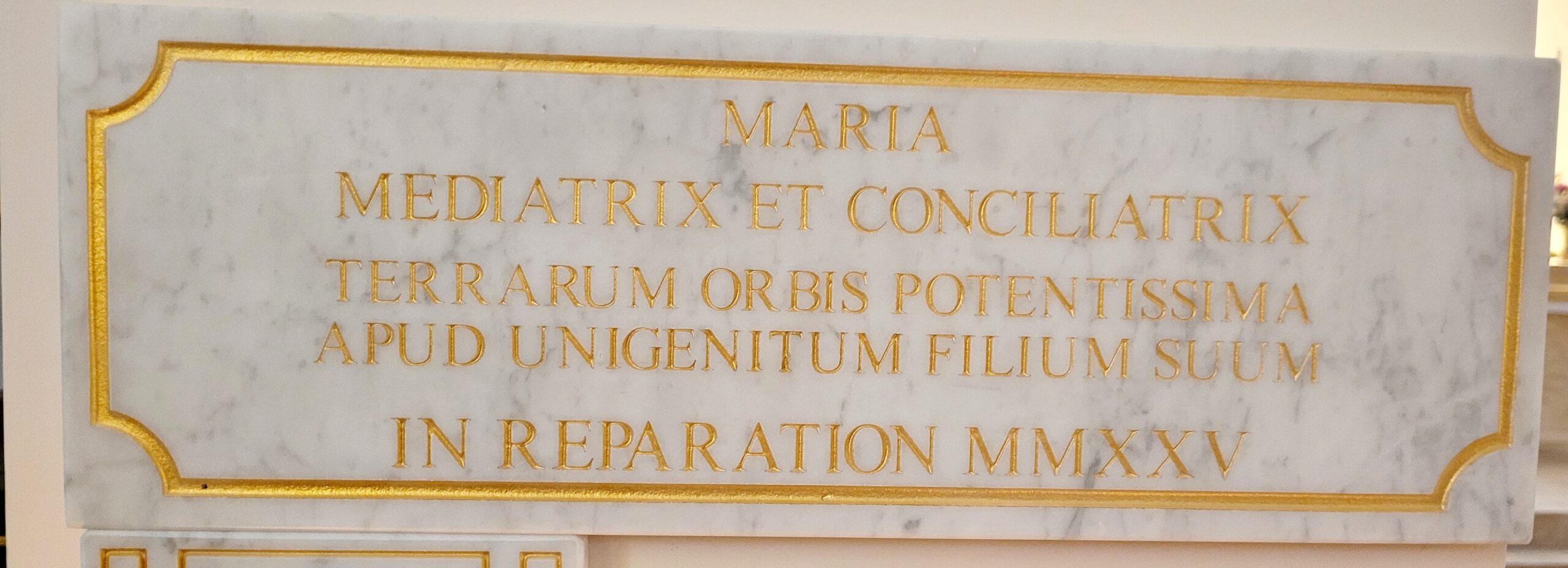 Človek sa cíti bezmocný tvárou v tvár tomuto bezdôvodnému útoku na našu nebeskú Matku. Objednanie pamätnej tabule ako pokánia za túto veľkú urážku cti Panny Márie’nám ponúka konkrétny prostriedok na odvolanie najnovšieho diela modernizmu.