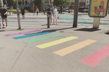 Na námestí SNP v Bratislave v sobotu odhalili prvý dúhový priechod pre chodcov. O priechode informovalo na sociálnej sieti Veľvyslanectvo Holandského kráľovstva na Slovensku.