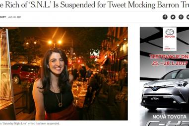 Dnes ráno publikoval New York Times správu Dave Itzkoffa o scenáristke, ktorú suspendovali za to, že útočila na maloletého Barrona Trumpa Americký žurnalista v New York Times sa venuje…