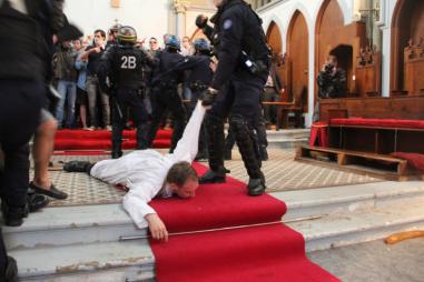 Kostol bol pripravený na demoláciu, ale demonštranti odmietajú opustiť nebezpečnú zónu. Videá, na ktorých polícia ťahá protestujúcich, sa šíria internetom.Fotografie z miesta činu ukazujú políciu,…