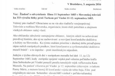 Katolícke združenie Magnificat Slovakia žiada generálneho riaditeľa RTVS Václava Miku, aby televízia odvysielala koprodukčný poľsko-taliansky film 11. september 1683 – Bitka pri Viedni. Tohto…