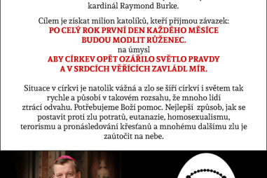 Kardinál Raymond Burke vyzýva všetkých katolíkov sveta, aby zaútočili modlitbou ruženca na nebo. Takto chce kardinál získať aspoň milión katolíkov, ktorí prijmú záväzok – Po celý rok v prvý deň v…