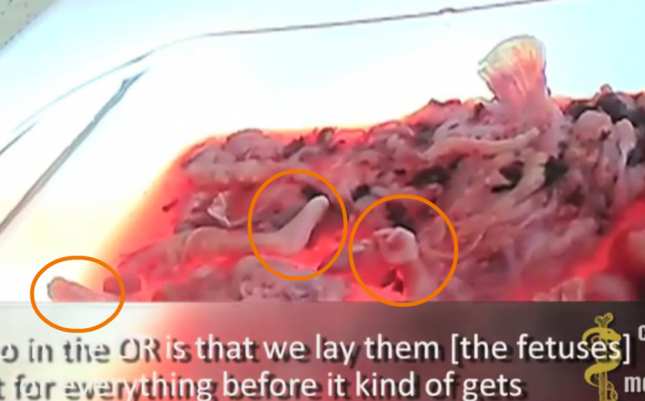 Kamera sa neskôr zamerala na nádobu s niečím, čo Plánované rodičovstvo nazýva „tkanivom“. Jeden z tamojších pracovníkov použil pinzetu, aby vybral črevá a hovoril o tom, ako „ľahko sa orgány oddeľujú od tela.“