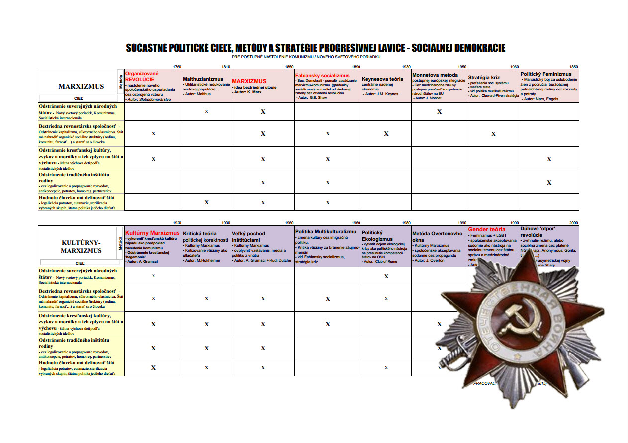 K. Marx - "Treba azda hlbokého dôvtipu aby sme pochopili, že zmenou životných podmienok ľudí, ich spoločenských vzťahov, ich spoločenského bytia menia sa aj ich predstavy, názory a pojmy, slovom, aj ich vedomie?" - Komunistický manifestGramsci - "Socializmus je práve to náboženstvo, ktoré zvrhne kresťanstvo.... V novom svete, Socializmus zvíťazí v prvom rade získaním si kultúry cez infiltráciu škôl, univerzít, kostolov a médií a to práve zmenou zmýšľania spoločnosti."L. Trotsky - "Je možné, že sa nezaujímate o vojnu, ale vojna sa zaujíma o Vás."