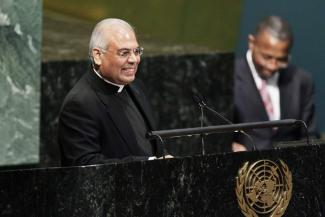„Konflikt v Sýrii nelze řešit vojenskou cestou,“ poznamenal ve svém projevu, jehož přepis byl zaslán agentuře Fides. „A kromě toho – uvedl nuncius – znepřátelené strany v tomto konfliktu projevují odhodlání dál beztrestně prolévat krev, dodávat ještě více zbraní a ničit další životy“, než zasednou k jednacímu stolu.
