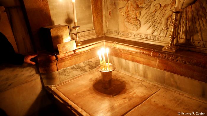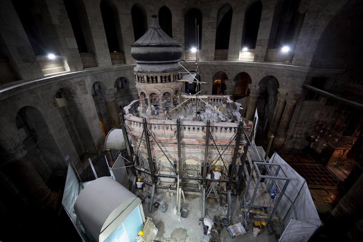 Jeruzalem - Po renovácii je Svätý hrob v Jeruzaleme opäť prístupný. Podľa tradície sa tu uctieva miesto kde Ježiš po smrti na kríži vstal z mŕtvych. Opätovné otvorenie svätého miesta sa dnes slávi ekumenickou svätou omšou.