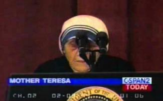 Poznámka editora: Vatikán potvrdil, že Matka Tereza z Kalkaty bude svätorečená v nedeľu 4. septembra v Ríme. Neustále mám na pamäti, že naše hnutie každý deň produkuje nových a väčšinou mladých zástancov života (pro-life). Možno však nevedia akou VEĽKOU zástankyňou nenarodených detí bola Matka Tereza. Nasledujúci súvislý prejav je trochu iný ako ten z 5. februára 2010, kedy bol znovu pripomenutý. Oficiálny prejav odznel na Národných modlitebných raňajkách v roku 1994 vo Washingtone. Hillary Clintonová bola vtedy ministerkou zahraničných vecí.