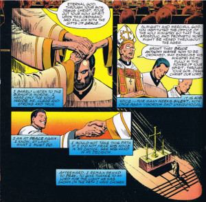 Podľa grafického románu z roku 1991 s názvom Batman: Svätá hrôza (nepatrí medzi hlavné diela o Batmanovi) bol Bruce Wayne v istom momente svojho života, avšak ešte predtým, než sa stal Batmanom, vysvätený za kňaza. Bohužiaľ sa tu nespomína cirkev, v ktorej bol vysvätený.