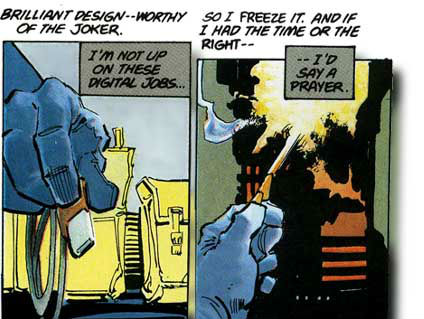 Batman sa v priebehu niekoľkých sekúnd, ktoré mu ostávajú do výbuchu, snaží zneškodniť bombu. A tu sú jeho slová: "Keby som mal na to čas alebo právo, pomodlil by som sa."