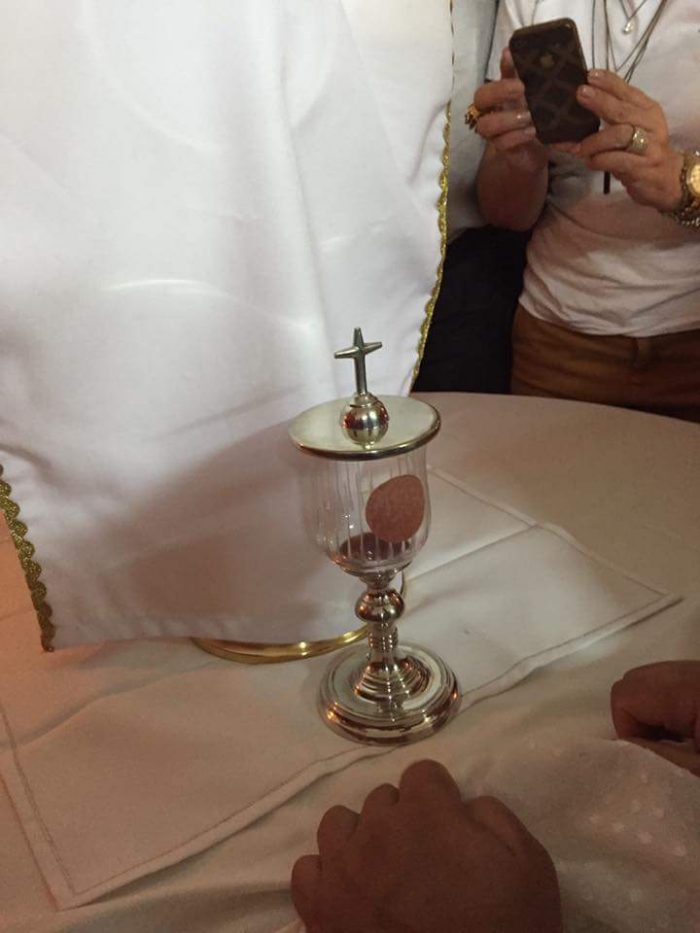 Podľa informácií zverejnených na Facebooku, slúžil kňaz sv. omšu vo farnosti Najsvätejšieho srdca Ježišovho v meste Tangará da Serra v sobotu, 14. augusta. Položil premenenú hostiu do kalicha s predrahou krvou a vypil predrahú krv. Keď skončil, všimol si niečo zvláštne: hostia sa nalepila na stenu kalicha a na nej sa objavila tvár Ježiša. Iní uvádzajú, že z hostie tiekla alebo ešte tečie krv. Ďalší hovoria, že sa hostia premenila na mäso.