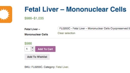Podľa vzoru Amazonu, zabezpečuje StemExpress dovoz týchto materiálov v uzavretých boxoch, s ktorými sa ľahko manipuluje, čo dovoľuje zákazníkovi nákup produktov, ako je napríklad „pečeň plodu“ podľa vlastného výberu, „iba“ za 986 dolárov. Pozri obrázok: