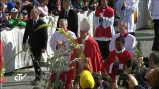 "Požehnaný je ten kto prichádza v mene Pána!" (Lk 19:38), dav v Jeruzaleme radostne zvolal pri privítaní Ježiša. Urobili sme toto nadšenie našim vlastným: mávaním olivovými a palmovými ratolesťami sme vyjadrili našu chválu a radosť, našu túžbu prijímať Ježiša, ktorý k nám prichádza. Tak ako vstúpil do Jeruzalema, tak aj túži vstúpiť do našich miest a životov. Tak ako učinil v Evanjeliu jazdiac na oslíkovi, tak rovnako k nám prichádza v pokore; prichádza "v mene Pána". Skrz silu jeho božskej lásky nám odpúšťa naše hriechy a zmieruje nás s našim Otcom a nami samotnými.