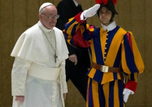 10. Pápež je chránený Švajčiarskou pápežskou gardou. Uniformy gardy navrhol Michelangelo a vojaci sú bežne vyzbrojení halapartňami, no tiež sú schopní použiť v prípade potreby oveľa efektívnejšie zbrane. Každý člen gardy je katolík, muž, Švajčiar a musel absolvovať vojenský výcvik vo Švajčiarsku. Vojaci musia preukázať dobré správanie a musia mať minimálne 172 cm. Vybraným vojakom je poskytnutá súkromná audiencia u pápeža spolu so ich rodinami. V extrémnych prípadoch sa od nich očakáva, že budú chrániť Svätého otca svojimi životmi. Švajčiarska pápežská garda je najstaršia aktívna vojenská jednotka, s nepretržitou existenciou od roku 1506.