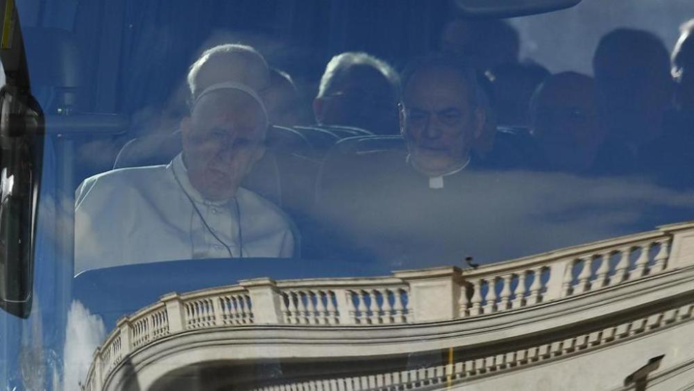 Foto: pápež a jeho spolupracovníci na ceste do Arricca na duchovné cvičenia.