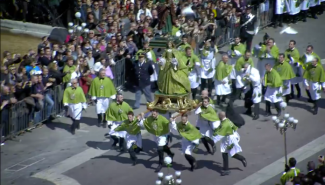 O 11:30 pred obedom sú na námestie nesené dve sochy Sv. Petra a Sv. Jána, ktorí boli prvými apoštolmi ktorí videli prázdnu hrobku. Sochy sú nesené smerom ku kostolu Sv. Filipa: pod troma oblúkmi môžeme vidieť sochu vzkrieseného Krista, ktorá je umiestnená na červenom baldachýne.