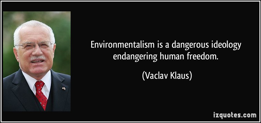 Václav Klaus: Enviromentalizmus je nebezpečná ideológia ohrozujúca ľudskú slobodu.