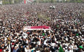 Foto: 100,000 Pakistancov smúti nad smrťou muža, ktorý zavraždil guveréra Taseera. Ten oponoval pakinskému "zákonu o rúhaní" a pracoval na prepustení kresťanky Asia Bibi, odsúdenej na smrť.