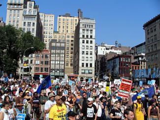 Pochod v New York City začal pred kanceláriami demokratického guvernéra New York City Andrewa Cuoma v Park Avenue a pokračoval smerom k OSN. Muži a ženy mávali Bibliami a spievali chválospevy. Ulicami mesta sa rozliehalo „Ježiš, Ježiš“ a „Dovoľ ľuďom hlasovať“.