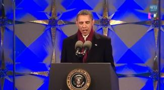 Pri každoročnom zažínaní vianočného stromčeka 1. decembra 2011 Obama povedal: „Kristove narodenie vyvolalo u anjelov radosť a zaujalo pastierov a ďalekých kráľov. Bolo vyjadrením Božej lásky k nám. Vyrástol, aby sa stal vodcom so srdcom sluhu, ktorý nás naučil jednoduchý, ale zároveň aj dôležitý, odkaz: že máme milovať Boha a milovtoať nášho blížneho ako seba samých.” Tento odkaz, dodal, „leží v centre kresťanskej viery.”