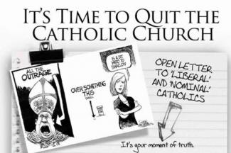 Inzerát Freedom From Religion Foundation (Nadácia Sloboda od náboženstva), ktorý má podobu listu „liberálnym katolíkom“, sa pýta „kaviarenských” katolíkov: „Prečo podporujete tyranský, autokratický, protifeministický, sexuálne zvrhlý a predpotopný klub starých chlapcov?“