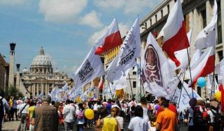 Obrovský rad ľudí vo veku 20-tich a 30-tich rokov sa prehnal historickým centrom mesta v smere od Kolosea, popri nádvorí Castel Sant’Angelo až k Bazilike Sv. Petra. Najviac viditeľnými boli mladí kňazi, seminaristi a rehoľníčky, všetci oblečení v tradičných sutanách a habitoch, rovnako ako veľký a hlučne veselý kontingent Poliakov, ktorí prišli do Ríma kvôli tejto udalosti.