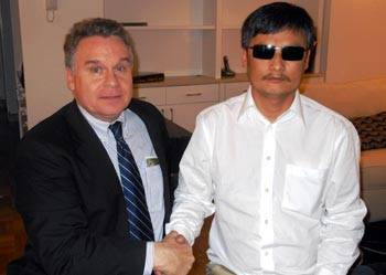 Pred svojím príchodom na Newyorkskú univerzitu Chen pristál v Newarku v New Jersey. Tam ho privítal republikán Chris Smith, americký kongresman, ktorý poukázal na Chenov prípad dávno predtým, ako sa nepriaznivý stav slepého právnika a jeho útek na americké veľvyslanectvo na konci minulého mesiaca dostal na titulky svetových novín.