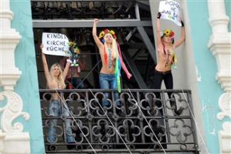 Feministická skupina Femen rozhnevala ukrajinských katolíkov, keď usporiadala protest, počas ktorého sa skupina žien vyšplhala na vrch katedrály sv. Sofie v hlavnom meste, vyzliekla sa do pol pása a nechala visieť zo zvonice nápis Stop, kým zneli zvony katedrály. Femen už protestovala podobným spôsobom proti niekoľkým ďalším otázkam vrátane podvodu na ruských voľbách a obchodu s bielym mäsom.