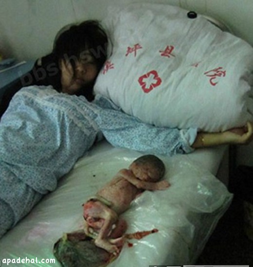 PEKING, ČÍNA, 2. júl 2012 (LifeSiteNews.com) -Táto fotografia zobrazuje Číňanku ležiacu vedľa svojho mŕtveho dieťaťa, ktoré zomrelo pri násilnom potrate. Zdravie matky je výrazne podlomené. Jej manžel len nedávno unikol z nemocnice, kde ho zadržiavali. Prisľúbil však, že donúti Peking, aby čelil vražednej politike jedného dieťaťa.