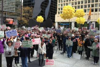 Pochodujúc presne napoludnie miestneho času protestovali ľudia v 145 mestách proti programu v rámci celoštátneho hnutia Stand Up for Religious Freedom. Protestujúci majú námietky voči požiadavke, aby všetci zamestnávatelia, vrátane veriacich, zdarma poskytovali svojim zamestnankyniam poistné krytie sterilizácií, antikoncepcie a liekov vyvolávajúcich potrat.