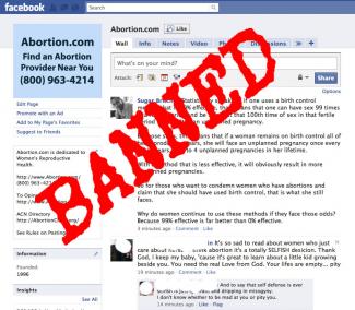 „Reklamu Poradentských služieb po počatí (PCAS) pravidlá Facebooku povoľujú, rovnako je to aj v tlači a rozhlasových médiách v Británii,“ tvrdí hovorca. „Na rozdiel od ostatných médií, ak sa ľuďom reklama na Facebooku nepáči, môžu ju odmietnuť kliknutím na „X“ v hornom rohu.“