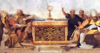 Eucharistia je cirkev, ktorá sa zviditeľňuje, je víťazným božím dielom, ktoré prerazí do histórie a predkladá sa každému človeku, je Ježišom, ktorý bol na kríži medzi dvoma zlodejmi, s vojakom, ktorý v ňom spoznáva Božieho syna, a zemou, ktorá sa trasie.