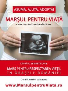 Nedá sa však povedať, že by sa každý stotožnil s ponukou Západu ako alternatívy rumunskej minulosti. Podporovatelia hnutia pro-life vo veľkých mestách pripravili k 23. marcu 2013 Pochod za život v Rumunsku. Do akcie sa zapojili mestá Alba-Iulia, Arad, Bacău, Bistrița, Brașov, București, Caracal, Cluj-Napoca, Constanța, Craiova, Deva, Fălticeni, Iași, Onești, Oradea, Pitești, Satu Mare, Sf. Gheorghe, Slatina, Suceava, Târgoviște, Timișoara, Tg. Mureș, Tulcea, a tiež dediny Zoițani, Adășeni, Tudor Vladimirescu (jud. Botoșani).