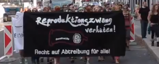 Propotratoví aktivisti niesli veľký čierny transparent zobrazujúci logo HLI uprostred kondómu s nápisom „Zabráňme nútenej reprodukcii. Potrat na požiadanie pre každého!“ Miestne médiá vytvorili video zachytávajúce tieto udalosti.