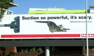 Billboard, ktorý propagoval vysávače značky Miele Australia, hlásal: „Nasávanie také silné, že to až desí.“