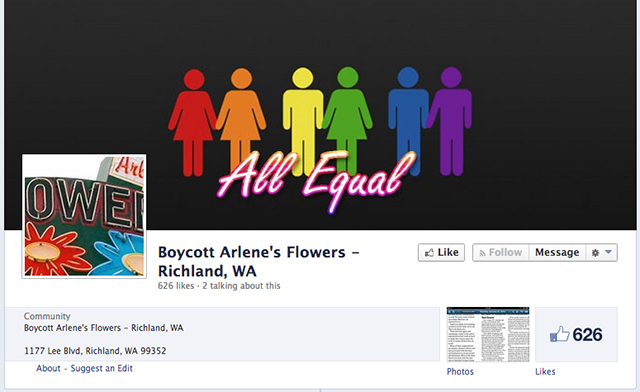 Jej dlhoroční zákazníci Roger Ingersoll a Curt Freed ju požiadali naaranžovať kvety na ich homosexuálny svadobný obrad.