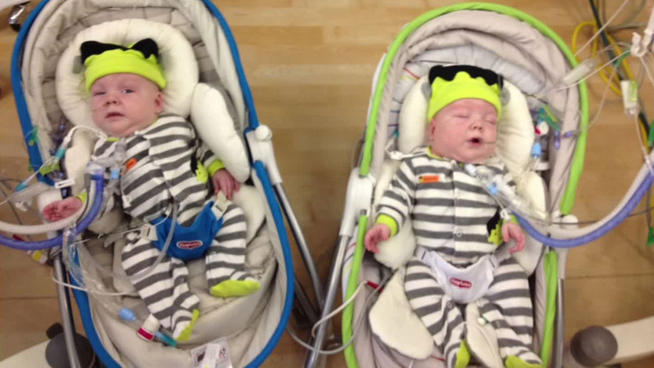 Bol to len druhý lekár, ktorý im povedal, že chlapci môžu žiť. A teraz, deväť mesiacov po pôrode a osem mesiacov po operácii, ktorou dvojčatá oddelili, Owen a Emmett mieria do lôžkovej časti rehabilitačného centra.